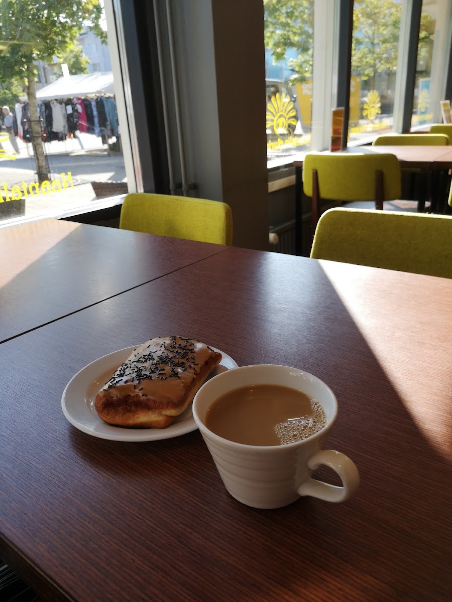 I love this cozy cafeteria. A friendly nice looking girl named Susanna prepares a really delicious coffee.